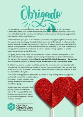Quando me pediram para dizer “umas palavras” sobre o Centro Comunitário ocorreu-me imediatamente e sem hesitação, uma enorme história de sucesso dedicada aos que mais precisam, e que o Grupo José de Mello, através dos seus voluntários, são testemunha disso mesmo.