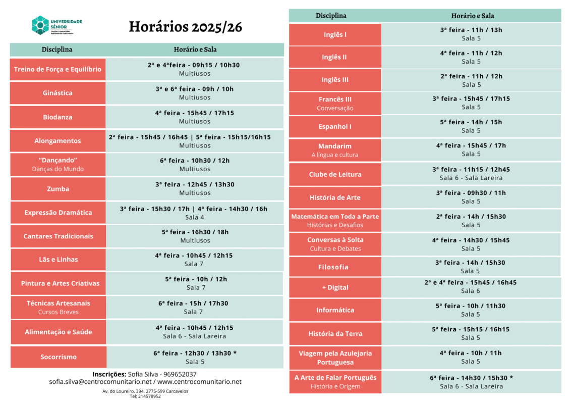 O Centro Comunitário da Paróquia de Carcavelos, em consonância com a sua Missão e com os seus Valores, disponibiliza através de uma oferta formativa atual e em permanente reformulação, mais uma possibilidade de congregar a sua comunidade através do ensino-aprendizagem, contribuindo, desta forma, para um envelhecimento ativo da sua comunidade.